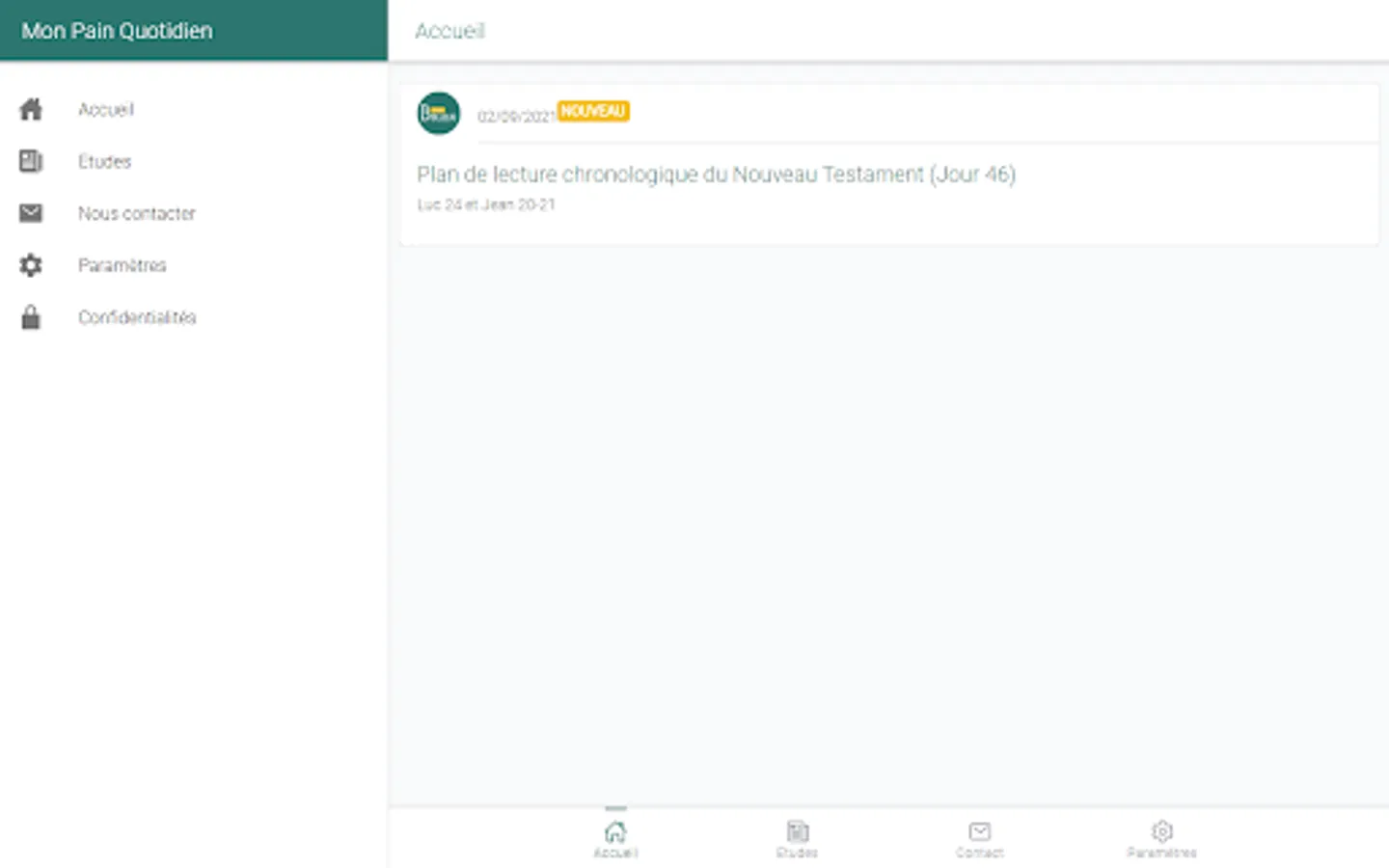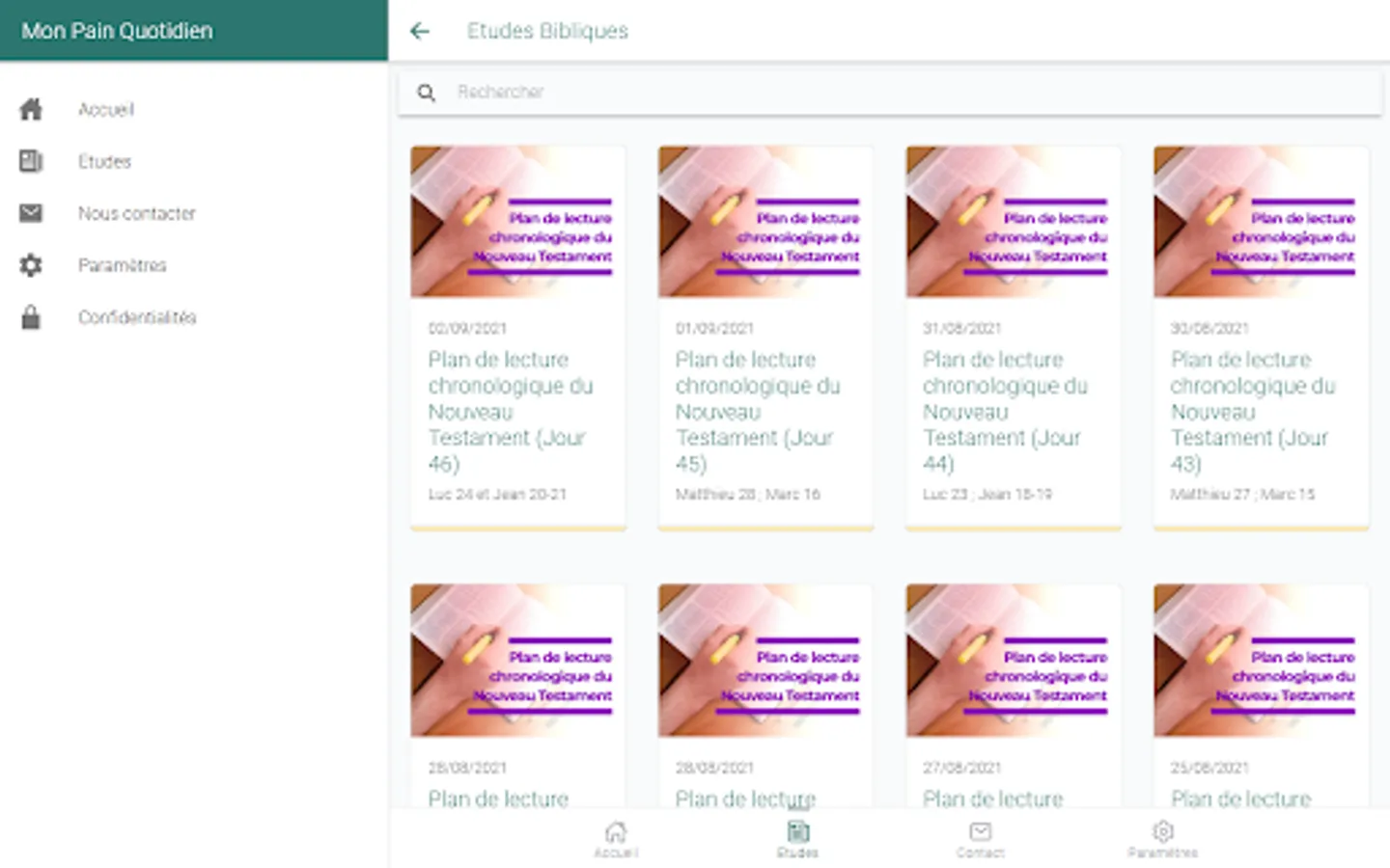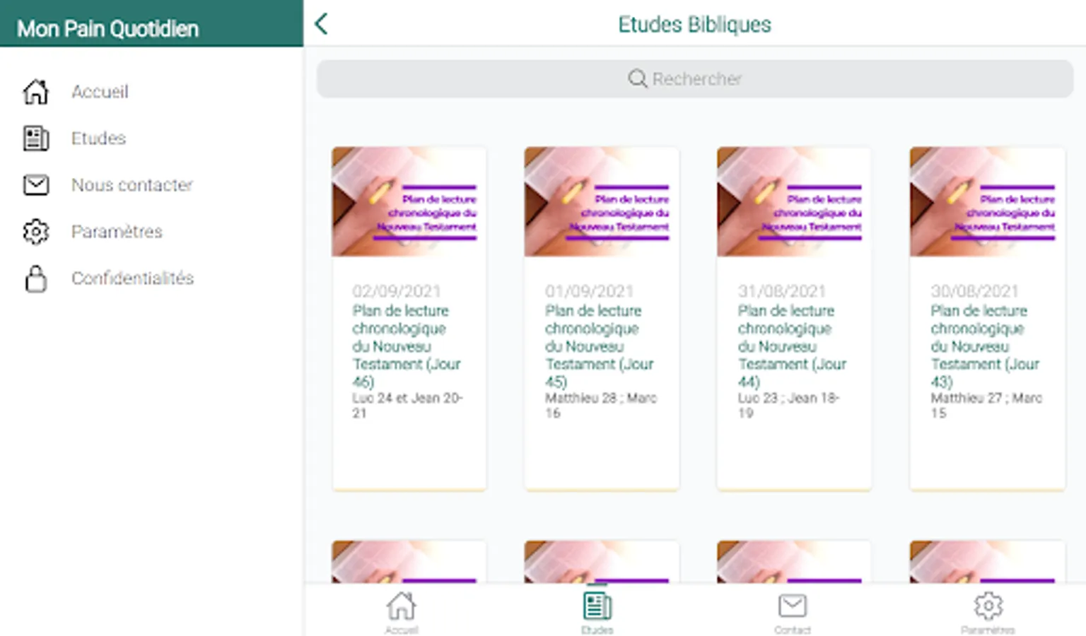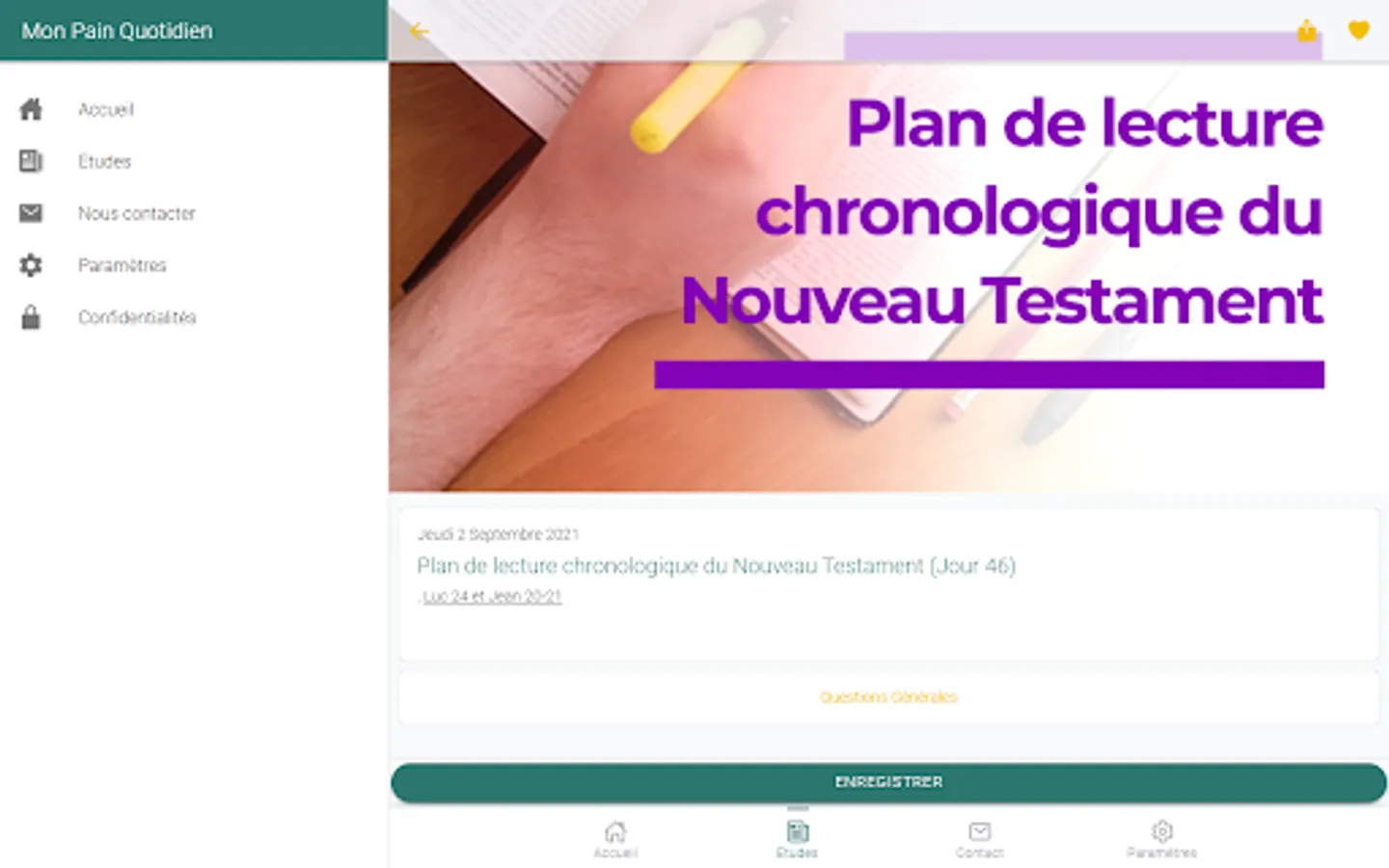 Through inspired Bible studies, Mon Pain Quotidien brings you spiritual nourishment, essential for the growth and good health of your inner being.