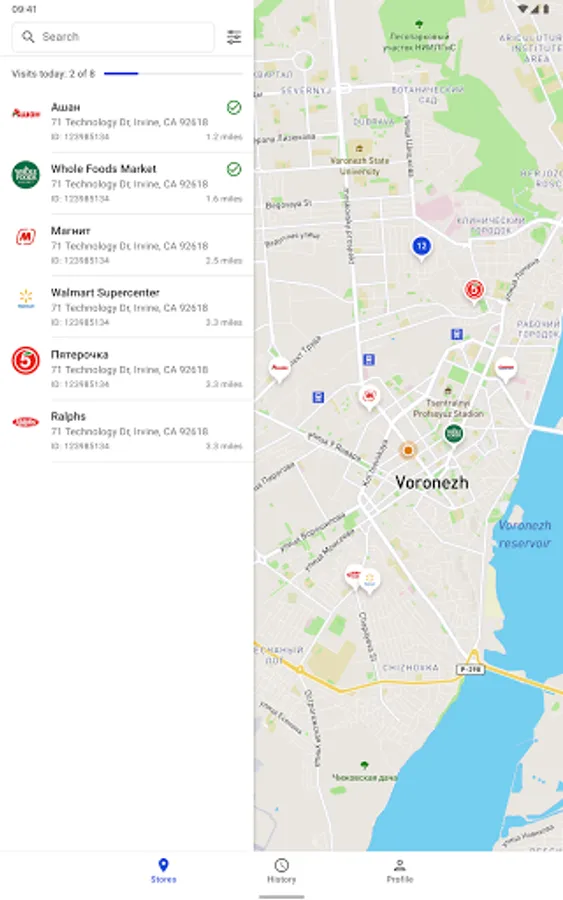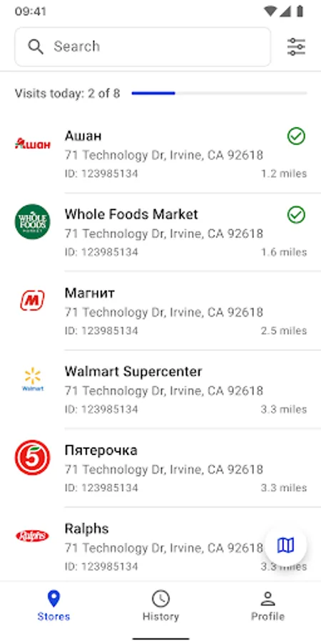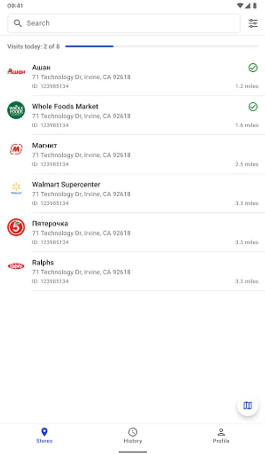 - History. View the history of visits to points of sale and visits.