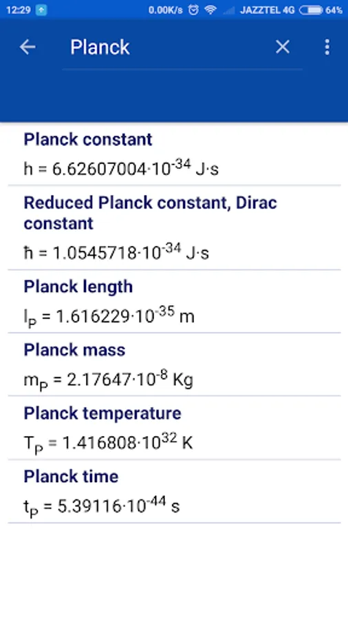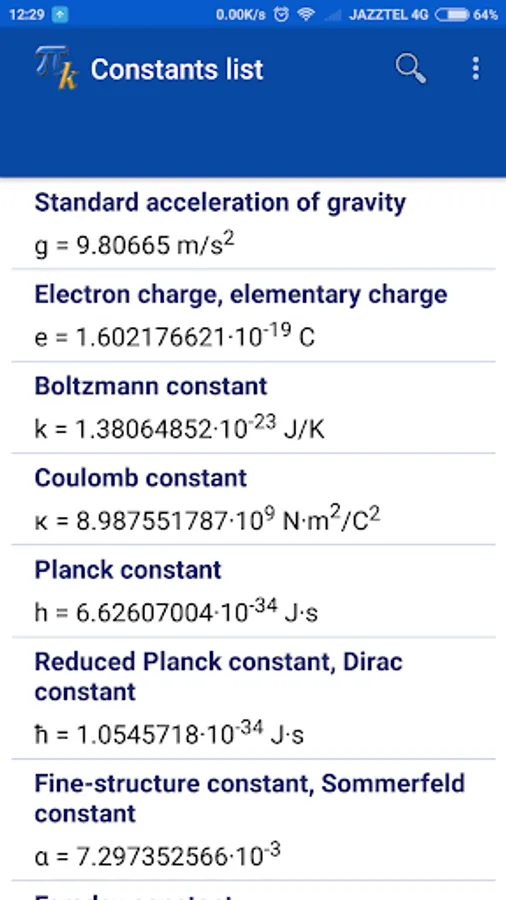 More than 100 values, easy to find. A brief information of the associated concept is included, as well as different values in other usual metric systems or even its expression of exact calculation for some relevant values.