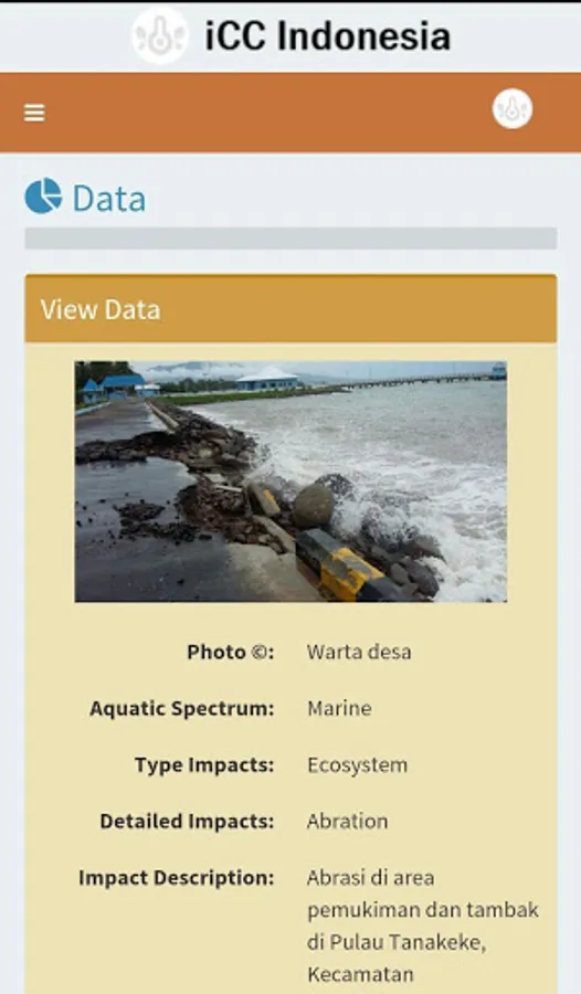The iCC Indonesia is the second application made by the Sekolah Tinggi Perikanan (Jakarta Fisheries University) aiming at recording all possible impacts of climate change on aquatic spectrum includes biotas and ecosystems. This application was created on November 11, 2018 originated from an idea of Kadarusman Ph.D, an associate professor in molecular systematic and conservation. To write down the idea, a batch student composed 70 people of department Aquatic Resources Management, has realized this stunning application thrived on public.