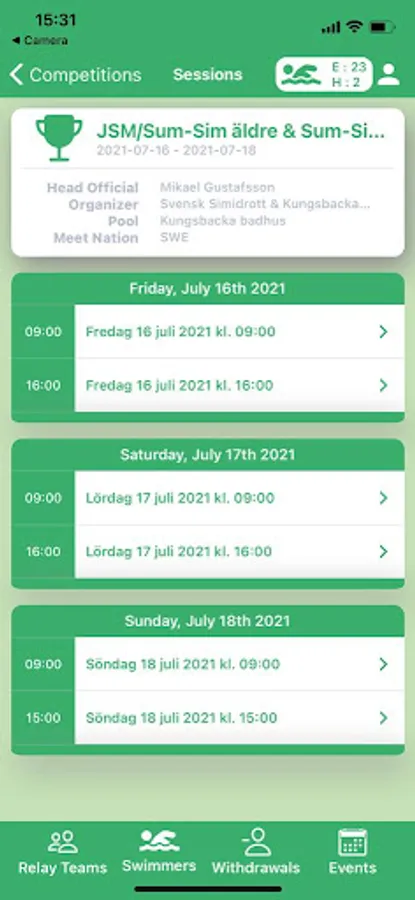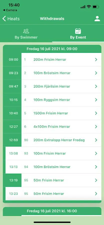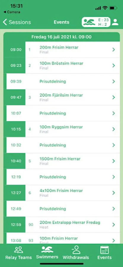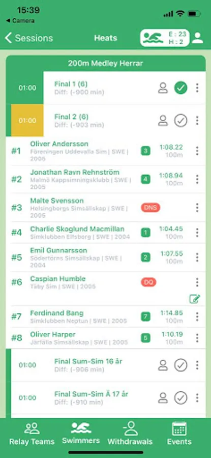 - Swipeable feature to make withdraw / unwithdrawn swimmer from any event.