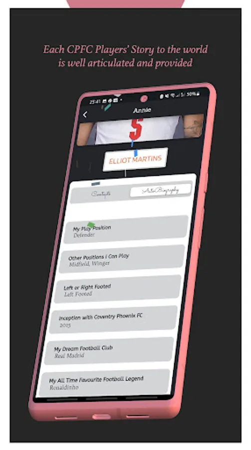 A well-curated app for Coventry Phoenix FC, which entails features such as [1] Players' Statistics; [2] Training and Matchday Images; [3] Players' Profiles and Autobiographies; [4] CPFC History and extra-curricular activities; and more.