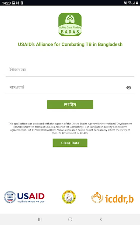 This app is used to screen TB Presumptive cases. BADAS Bangladesh is doing field activities and icddr,b supervises this program under USAID ACTB supervision.