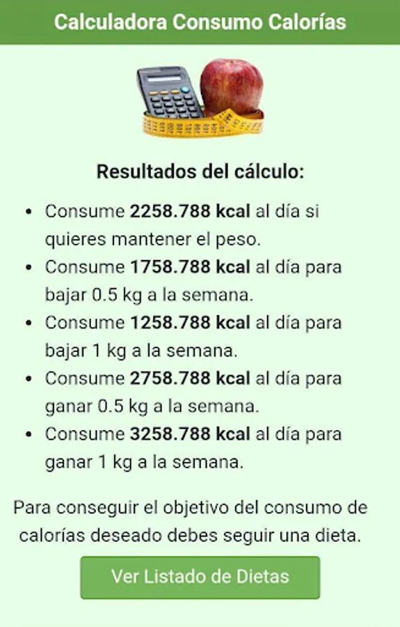 Suitable for all types of users: casual, fitness enthusiasts and personal trainers who want to quickly and easily calculate your daily caloric needs.