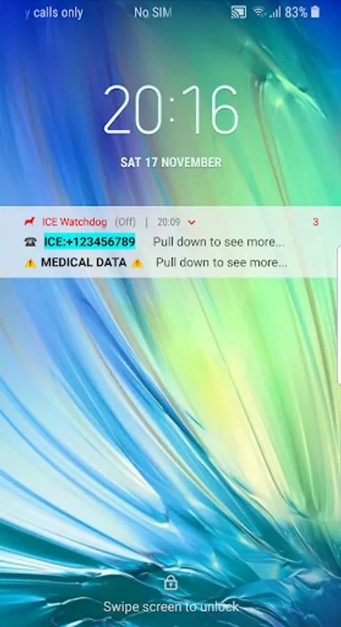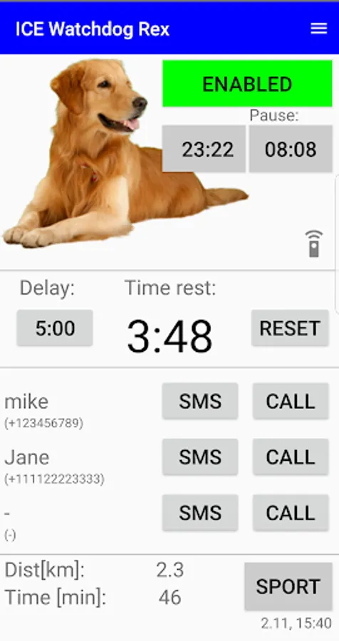 2. ICE Watchdog monitors motion of your phone, if no activity during parametrized time period, an alert SMS is sent or a phone dialed to max three contact person.