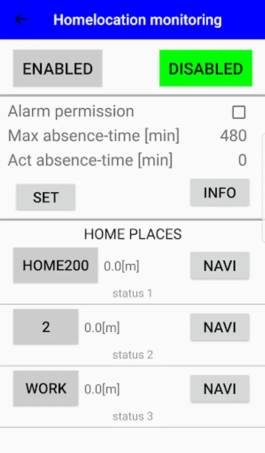 4. Homelocation monitoring, possible to enter three positions with radius. If too long outside homelocations, your friends are alarmed by SMS, which can include location coordinates.