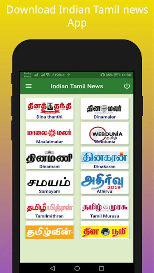 This is a Free app for Indian Newspapers in Tamil. Readers can stay up to date with latest news of India.