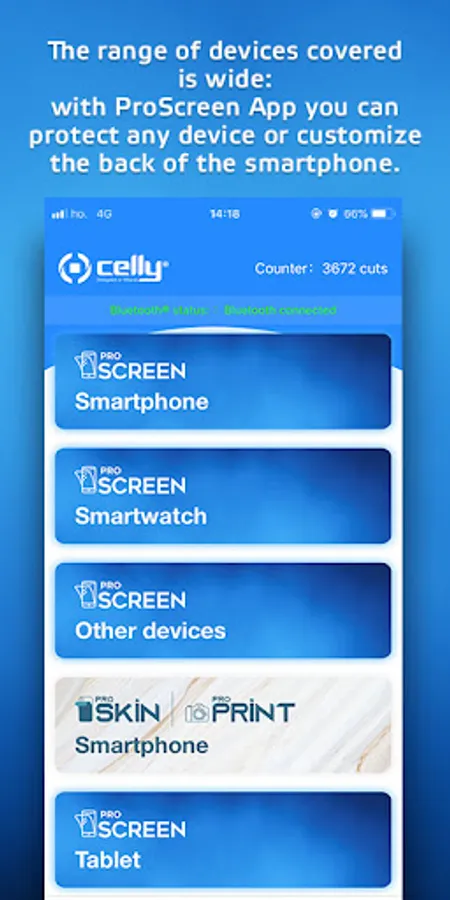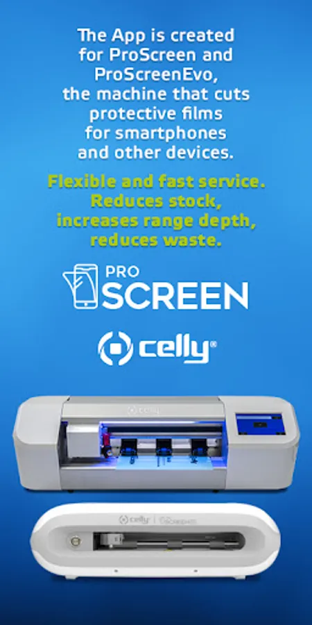 This is the App for ProScreen and ProScreenEvo, the B2B Celly's cutting machines for screen protector films and customization films.