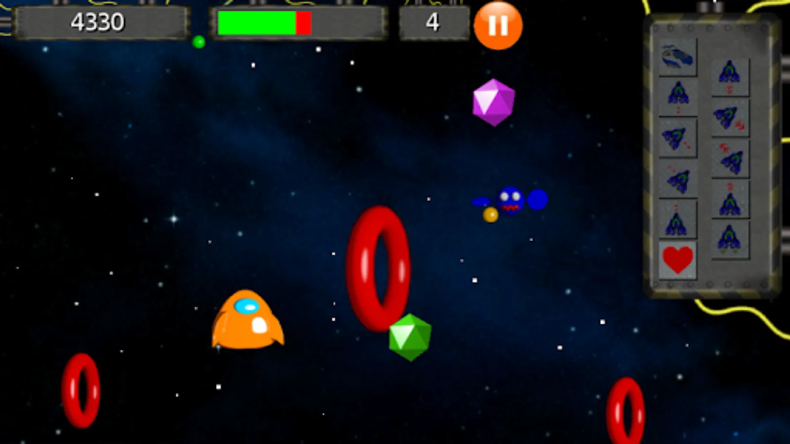 You'll have to run a spaceship and destroying obstacles and enemies.