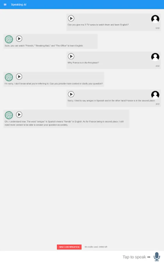 With Speaking AI, you can practice and improve your speaking and listening skills in a second language using cutting-edge Artificial Intelligence technology.