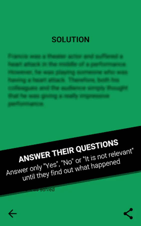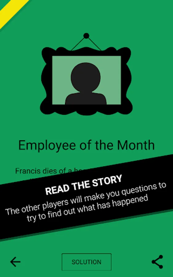 Then he/she reads its solution without telling the other people. The rest of the players then have to make questions in order to solve the mystery.