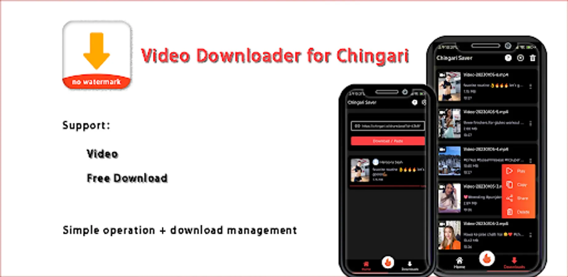 Downloader for Chingari is the best app to download videos on Chingari without watermark, it downloads fast and free, and supports download without watermark.