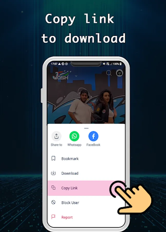 1. Open Josh, find the post you want to download, choose to share and copy the link.