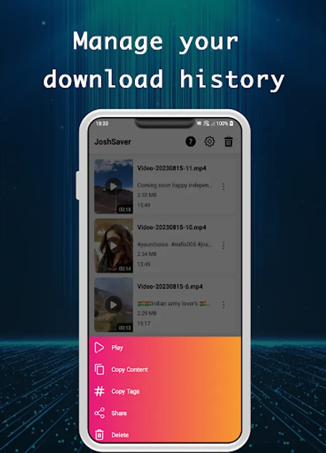 Video Downloader for Josh video downloader is not affiliated with Josh. It is a tool to download Josh video, music.
