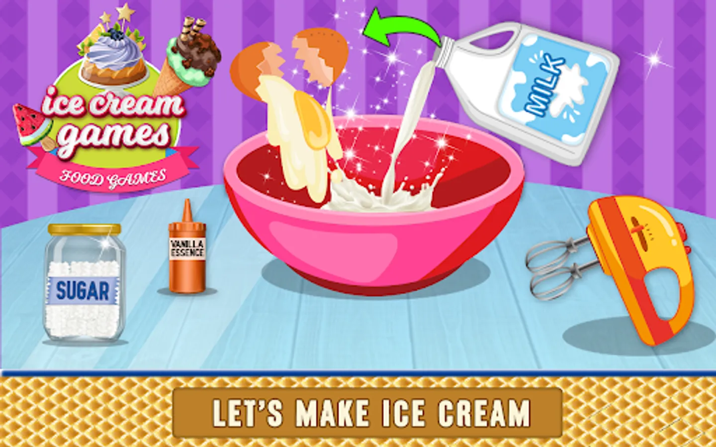 Ice cream making is a food simulation game that allows players to create their own custom ice cream flavors. Players can mix and match different ingredients such as cream, milk, sugar, and various flavorings to make their ideal frozen dessert. The ice cream games offer different types of ice cream recipes including soft serve, ice cream rolls, frozen yogurt, gelato, and Dondurma. Players work as ice cream truck sellers and must fulfill customer demands by creating and serving their preferred ice cream combinations. The goal is to become an expert food maker and serve delicious frozen desserts to all customers.