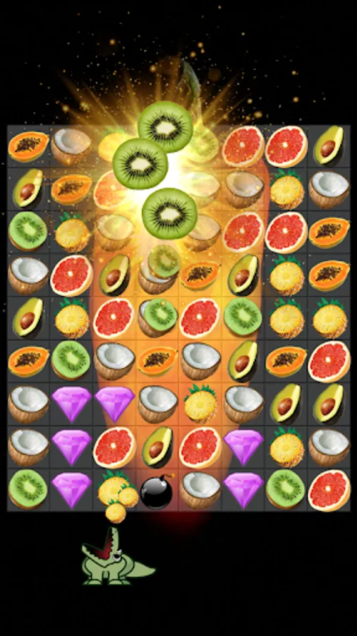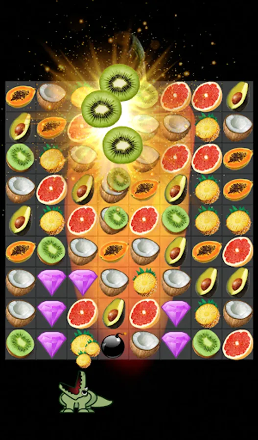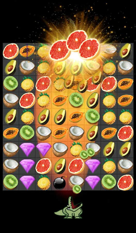 Fruit swap master: crush mania, juice jam blast games begin with a target, feeding alligator a number of diamonds. If you want to be fruit jelly bomb blast legend heroes, let experience a sweet candy fruit juice crush saga game now. The different game play of fruit splash mania match 3 journey is collect and feed the crocodile diamonds or the other obstacles.