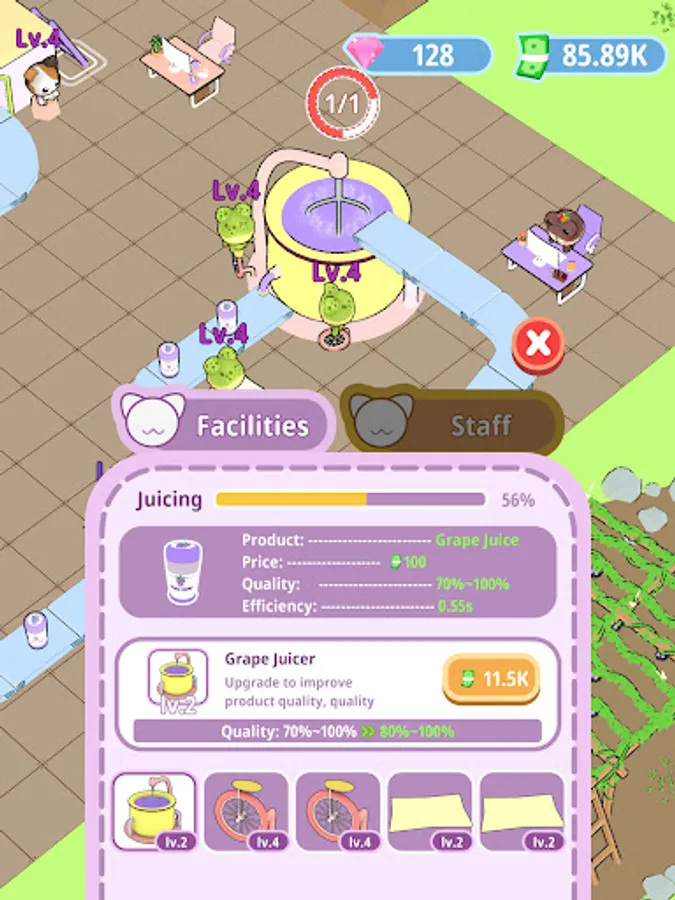 The cute animals will help you to speed up the productions! And with your hard work, You will eventually get a perfect industial chain!