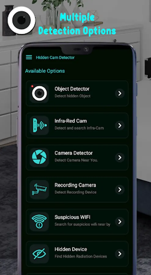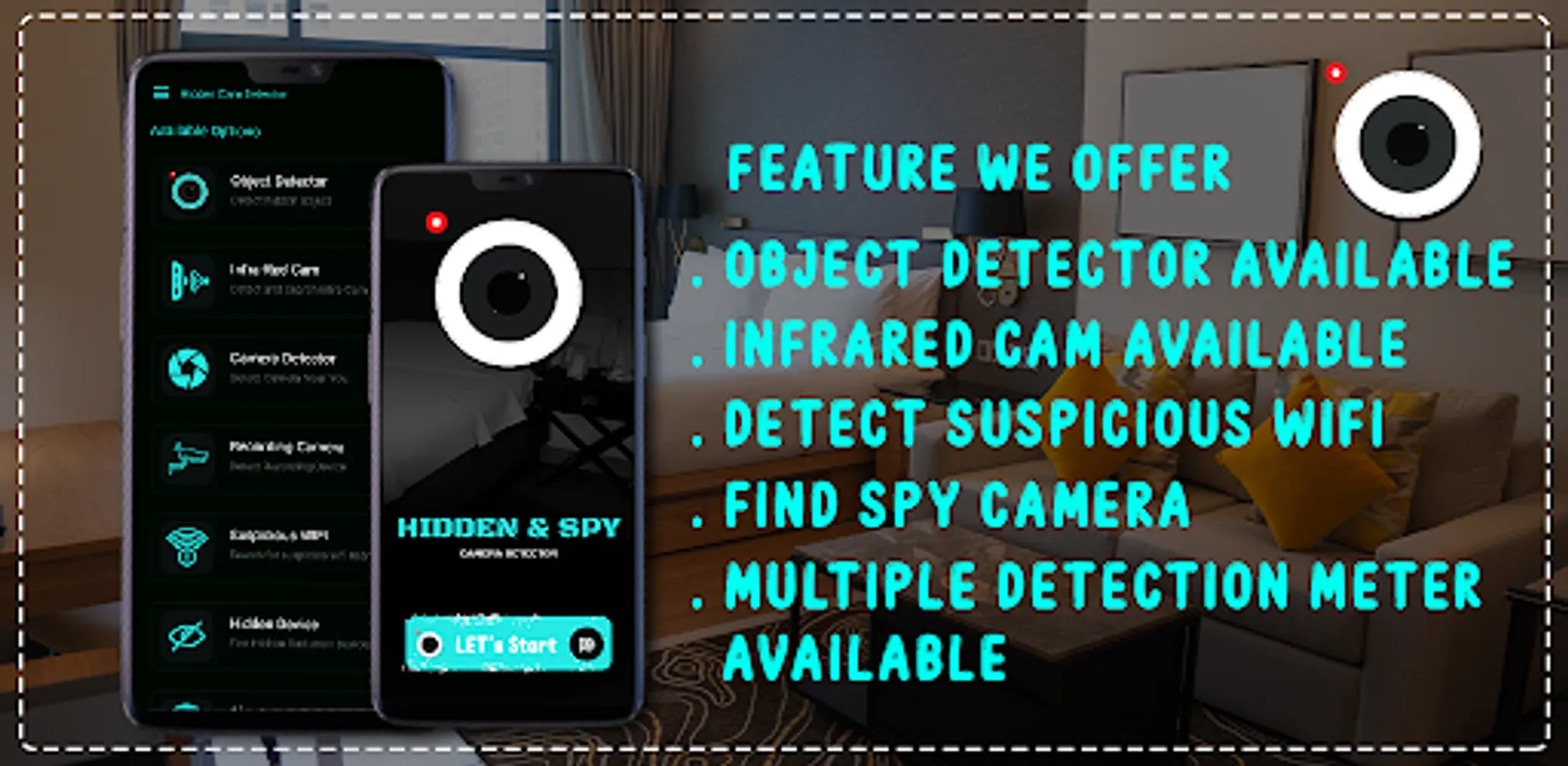 Hidden camera finder application is one of the best spy camera finder that has been designed by our Developers. It's a simple & user-friendly app to use, which will help you to locate hidden cameras and spy cams in your house or room without spending more money on expensive security gadgets.