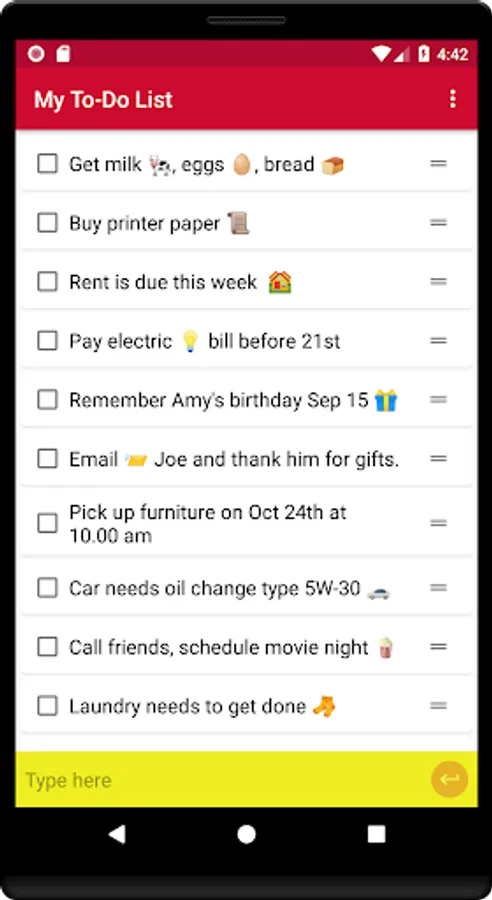 This is a fast and simple to do list app. It can be used as a general to do list for your life. If there is anything to be done, just pull up the app and type it so you don't forget. Check it off when you are done. It's that easy.