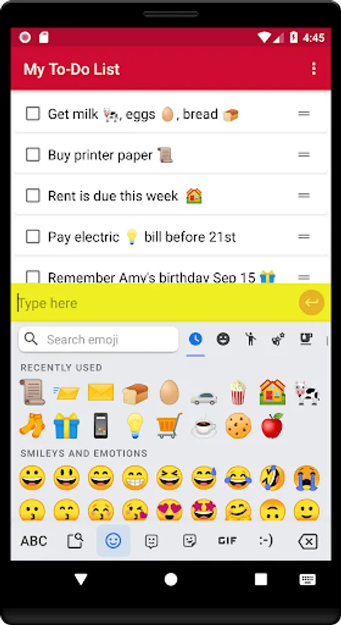 * Use your keyboard's build in emoticon / emoji function for icons in list.