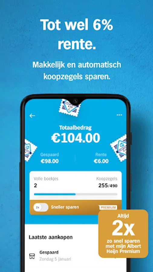 No more sticking, no more lost stamps. Save your stamps digitally in the AH app, so you always have your (full) savings cards at hand. Also your Purchase Stamps with 6% interest. Just while shopping with your Bonus card.