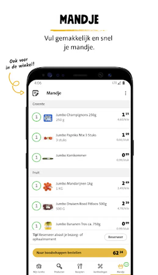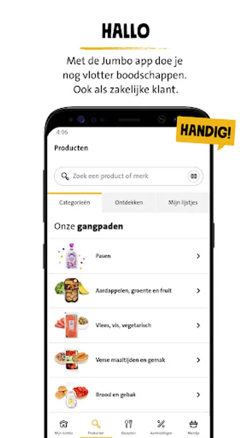 With the Jumbo app you can do your shopping even faster. With the service, wide choice and lowest price guarantee that you are used to from us! Now also for your business messages that you can easily pay afterwards on request. Want to order even faster? Use our handy product scanner.