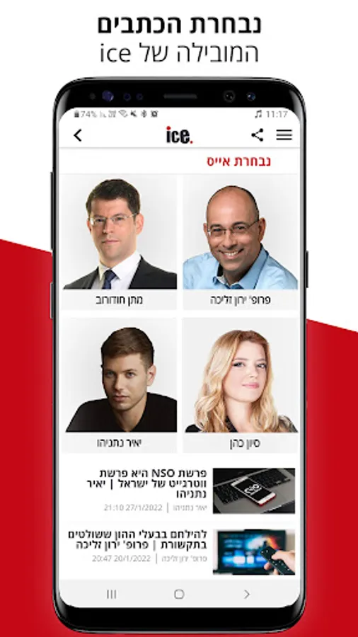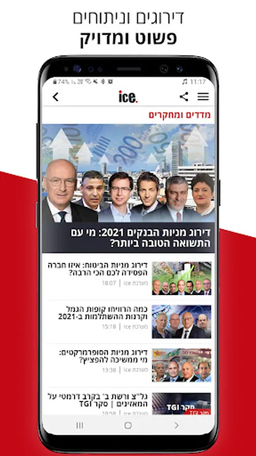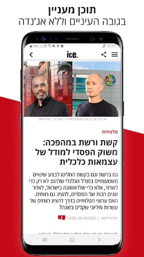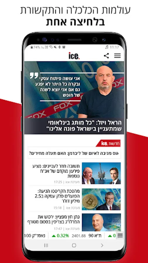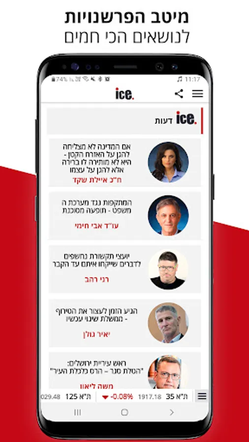 The ice app advocates journalistic writing at the highest level which is aimed at truth and has no political agenda. So what are you waiting for? Download ice and you will get a comprehensive picture of the public and economic agenda in Israel and around the world.