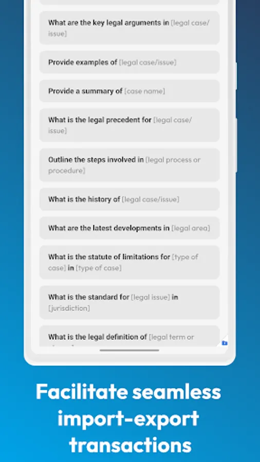Trade Compliance and Regulations: Stay compliant with the ever-changing import and export regulations. The app provides insights into international trade agreements, export control lists, sanctions, and embargoes. Ensure that your business operates within legal boundaries and mitigates the risk of penalties or disruptions in trade.