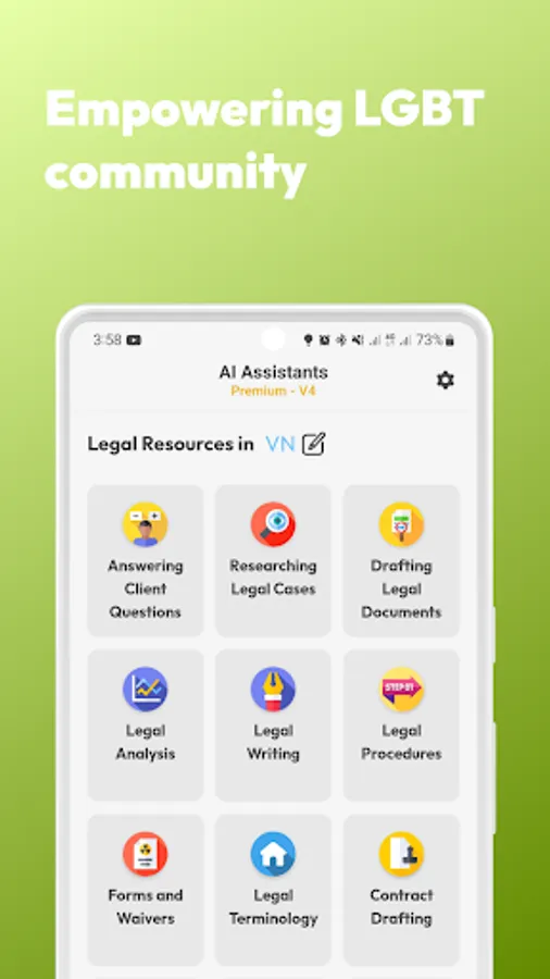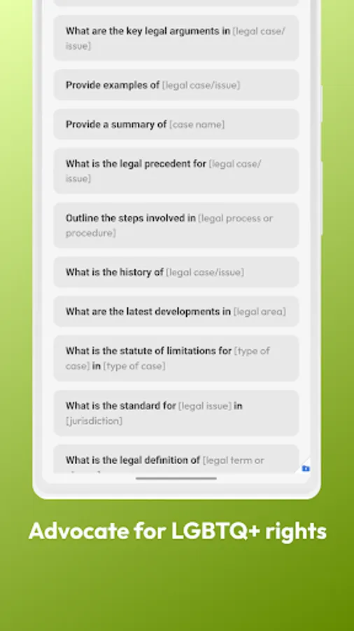 The AI LGBT Rights app is a comprehensive resource designed to promote awareness, understanding, and advocacy for the rights of lesbian, gay, bisexual, and transgender (LGBT) individuals.