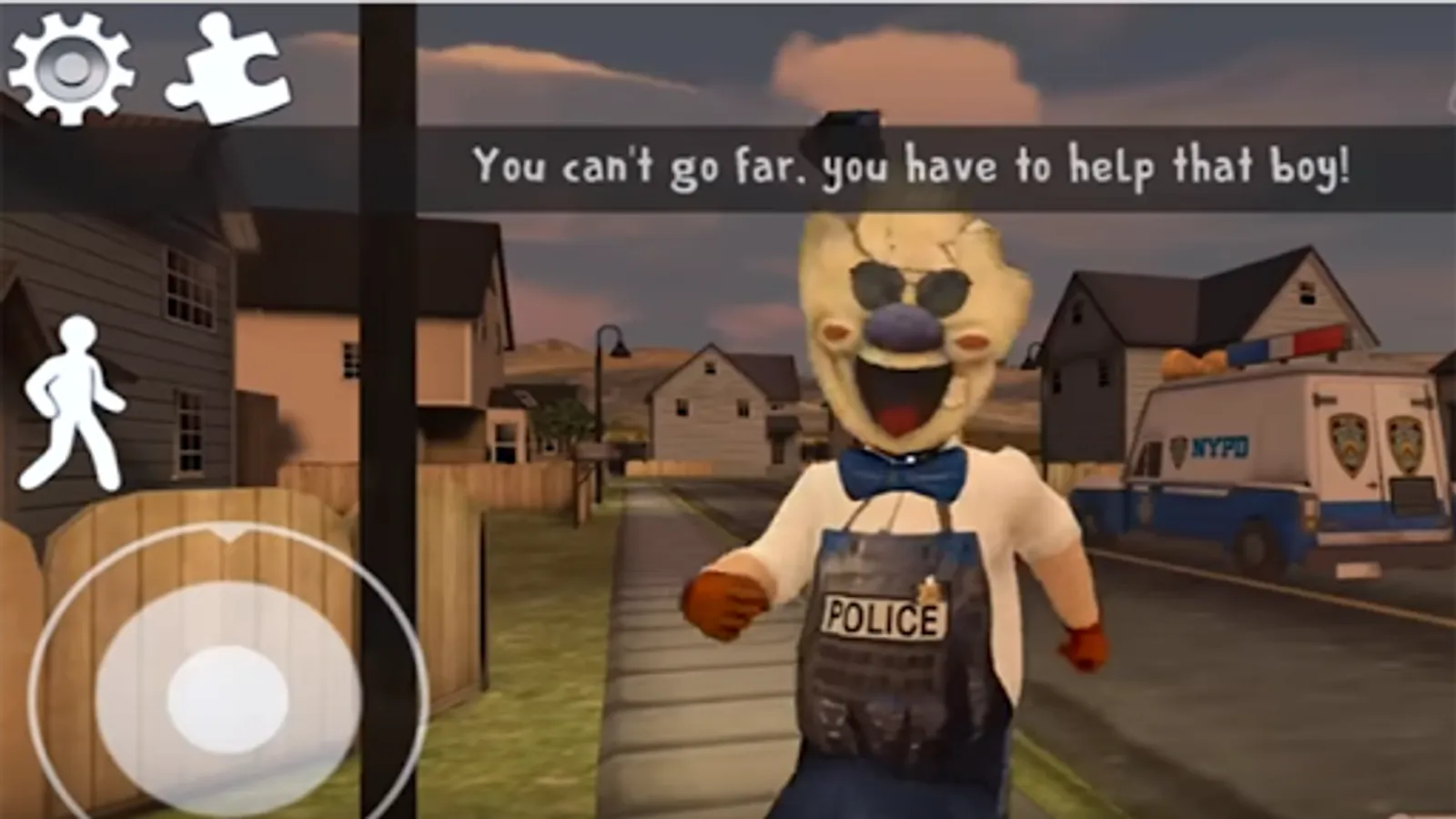 The ice-cream seller is police e has come to the neighborhood! She has kidnapped your friend . When you meet Rod is police, keep silent because Rod police can hear every sound you make and she has frozen you using some sort of superpower.