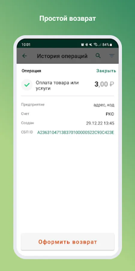 An application with an intuitive interface will help you instantly serve physical. persons through the SBP in any place: stationary point, taxi, restaurants and cafes, as well as courier delivery.
