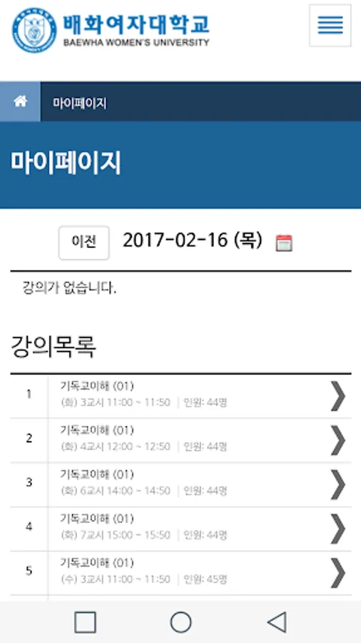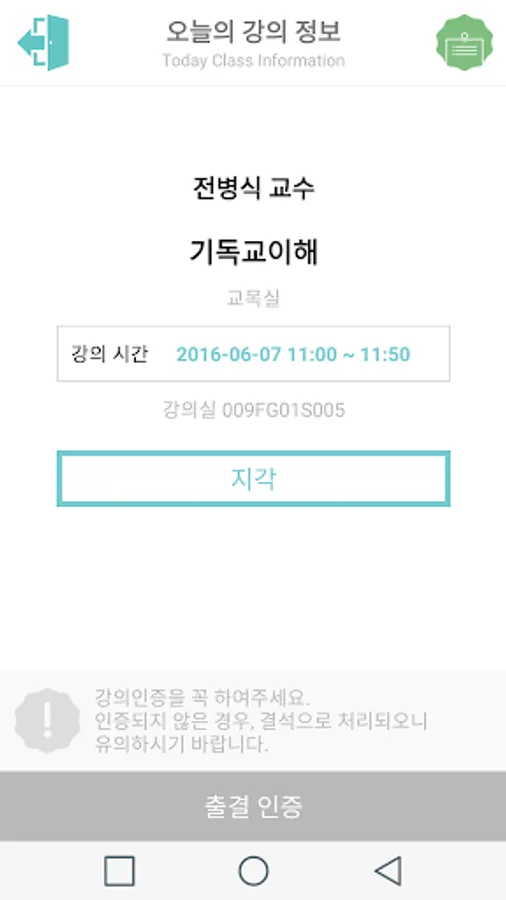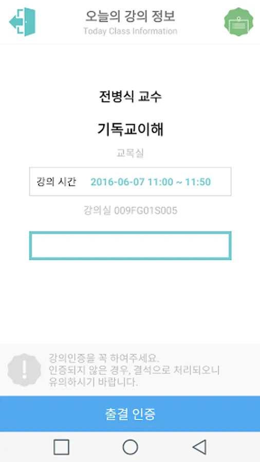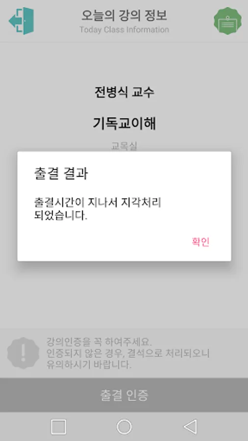 The Baehwa Women's University attendance certification app handles attendance through three methods.