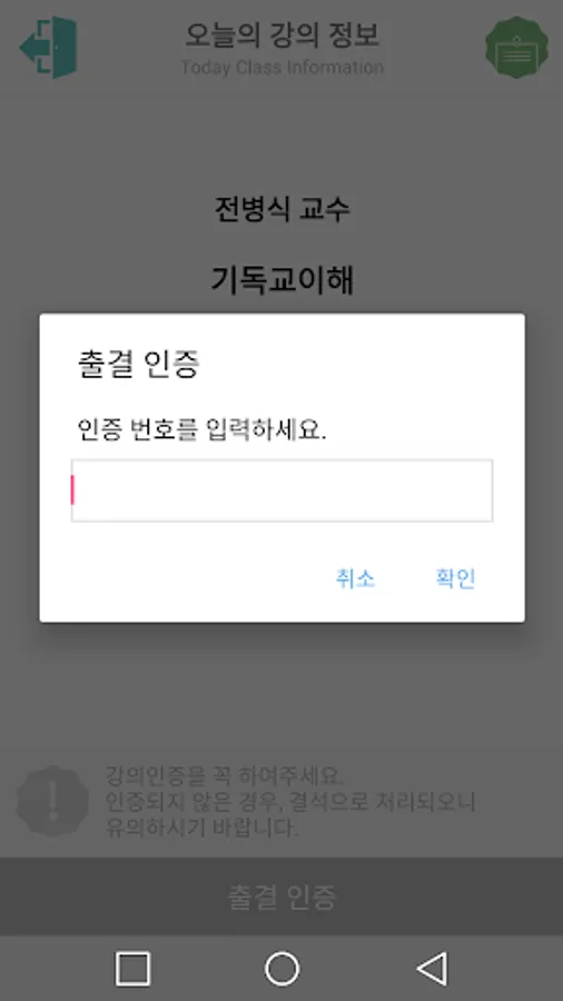 The authentication number input method is that the student enters the authentication number specified by the professor through the app.