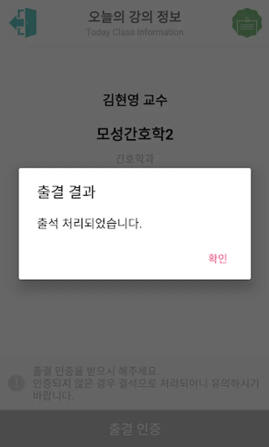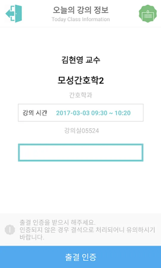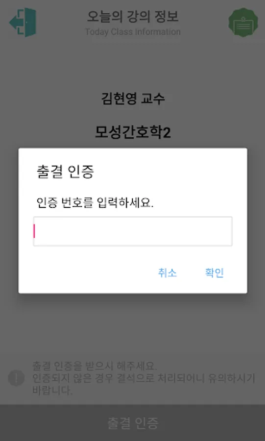 Certification number input mode is student a certificate number that is specified by the professor entered through the app and the Bluetooth attendance processing scheme attendance to receive and process the authentication number transmitted by the professor app from App student.