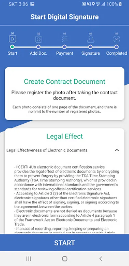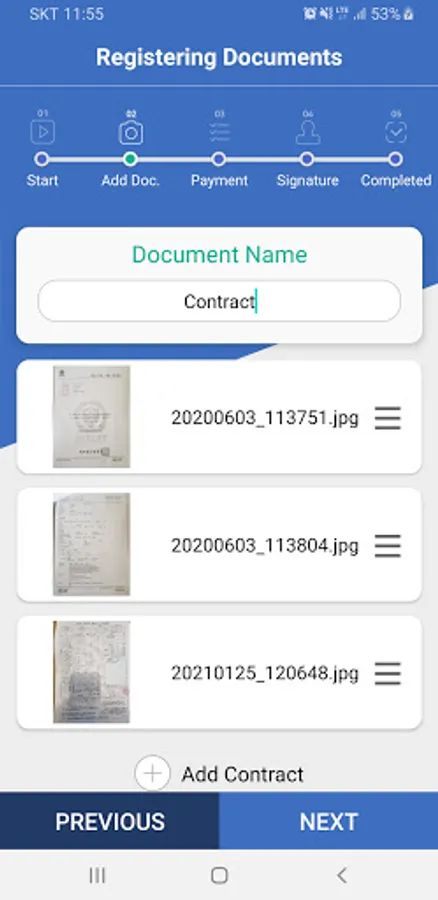 1. Shoot off-line signed contract documents and register them in the I CERTI 4U app.