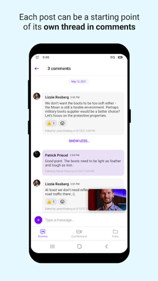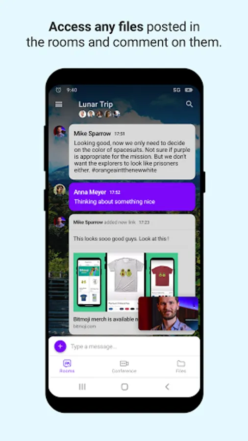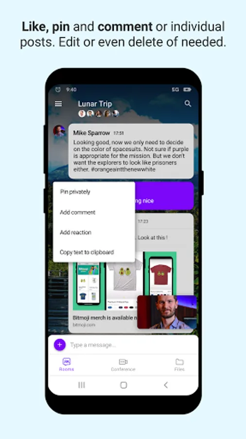 Collaborate with your team using all the handy features such as comments, pins, mentions and file sharing. Nobody will tell you're following up on work from your Android.