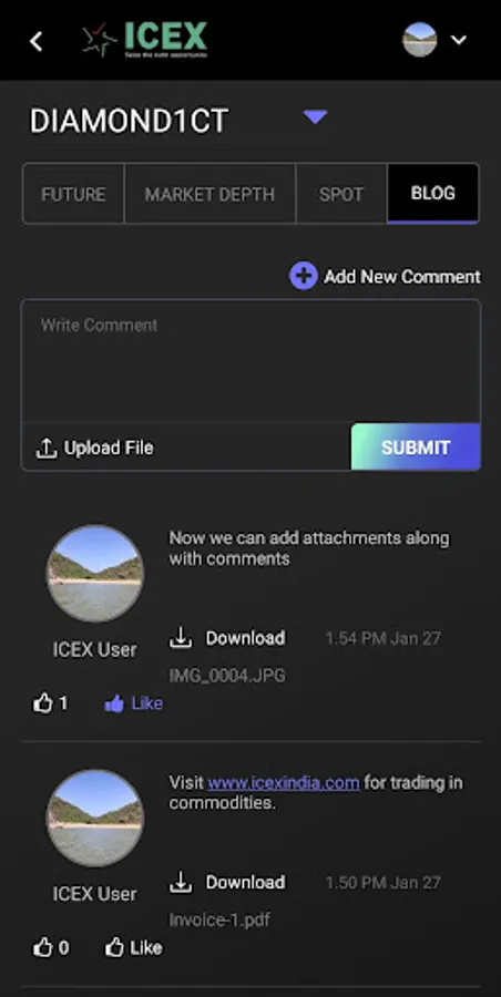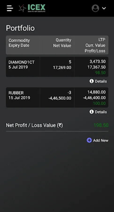 Keep track of Futures & Spot Prices of ICEX traded Commodities on real time basis. Watch real time price graphs, market depth, trade information. Build and Track Portfolio, Share your views in the Blog section.