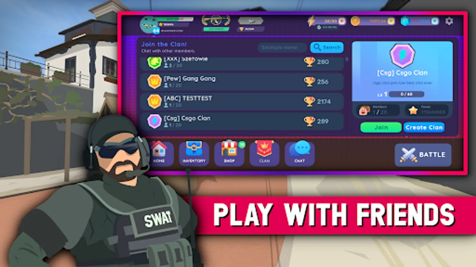 • Clans - Team up with other players and make the best clan