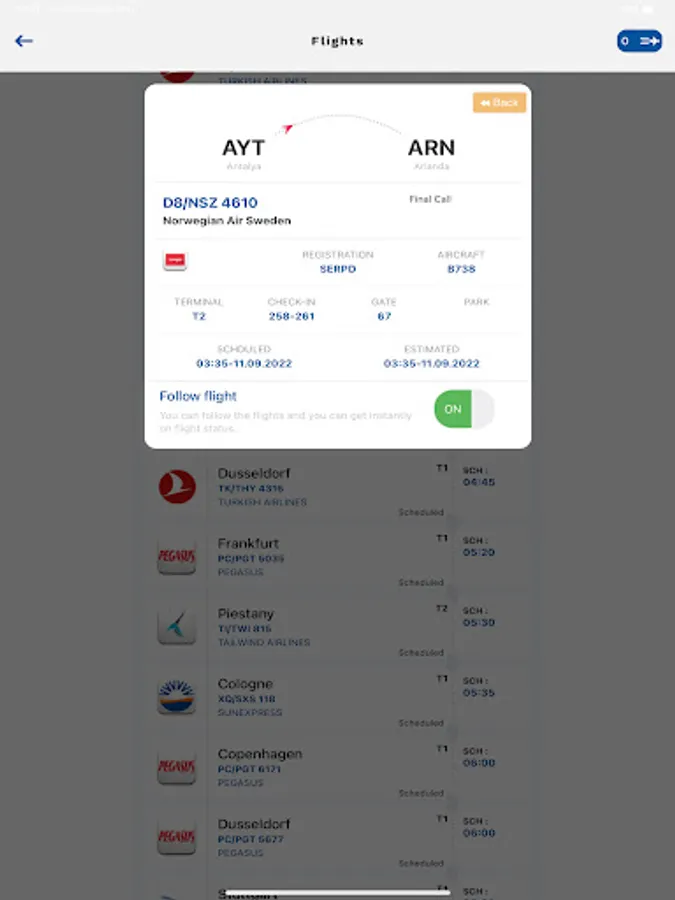 The only official Android-App of FRAPORT TAV Antalya Airport. With this application you can access more information for following services: