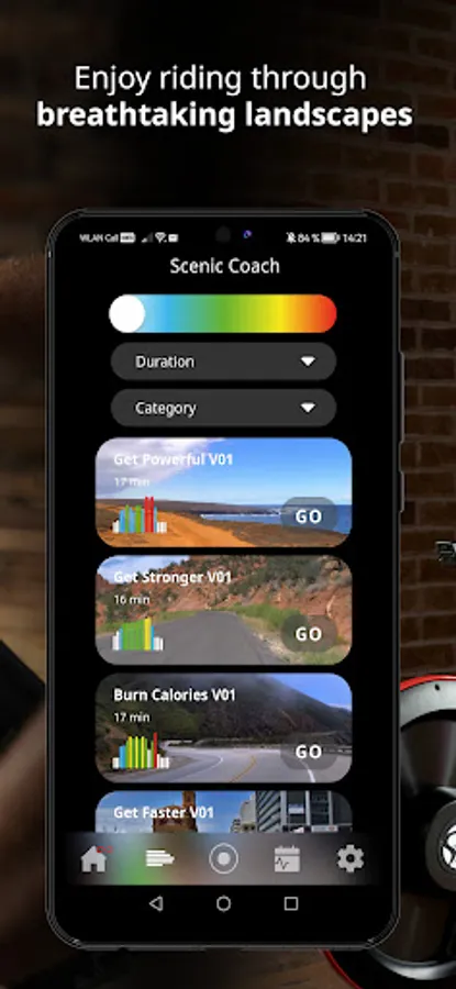 Ride with amazing instructors from around the world, get motivated by immersive scenic video footage from around the globe, and enjoy more than 300 guided music workouts. Set your individual goals and view and compare your Coach By Color® heart rate and power zones in real time.