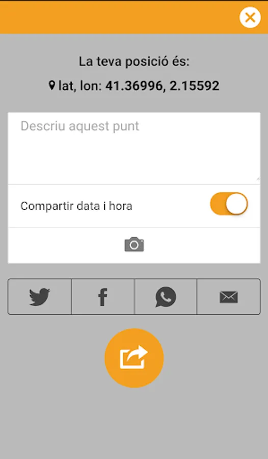 Quan entreu to "On sóc?" Localitza l'aplicació us on the map. If premeu Boto social xarxa amb which voleu share, Permet us escriure one text curt, afegir a photo i l'show or not current time in missatge. Així podeu share on sou in a crowd or on us poden us HEU perdut trobar if the muntanya.