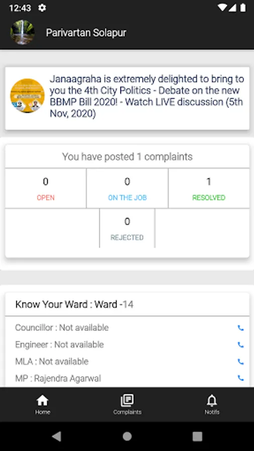 Parivartan Solapur is an official platform for grievance redressal built in partnership with Solapur Municipal Corporation. It allows citizens to post cleanliness related issues in their neighborhood communities for resolution by health/sanitation officials.