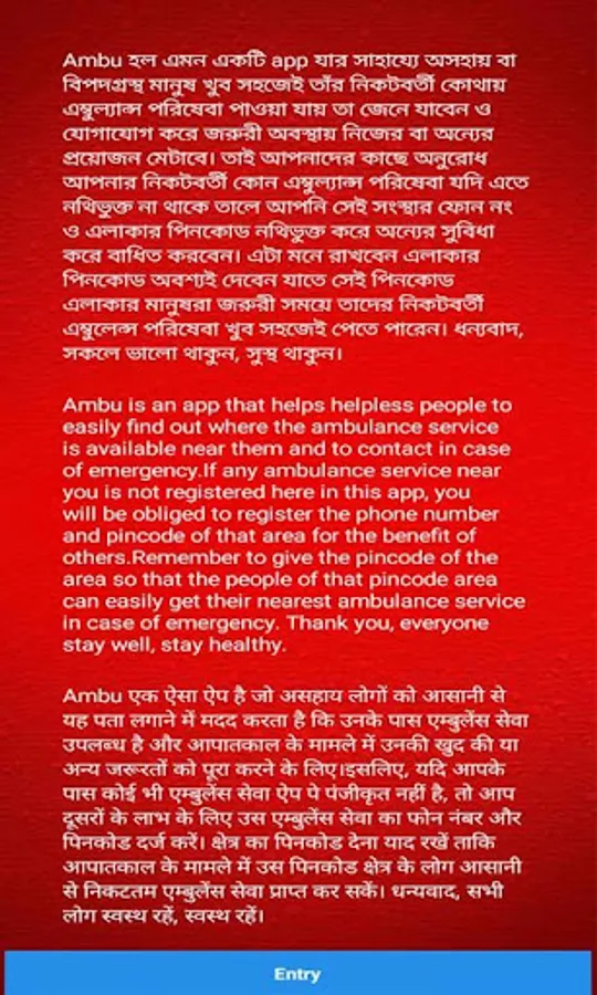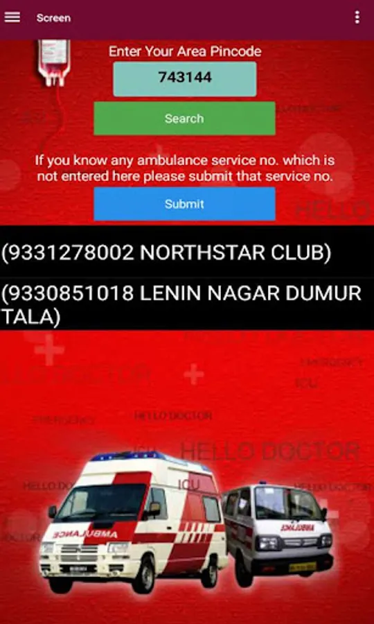 Most people do not have the ambulance phone number when they need an ambulance, they have to get the number from friends or neighbors, and it take a lot of time, for that the patient's condition becomes critical, So if I get an ambulance number in my area in an emergency, many patients will be rushed to the hospital or doctor at the right time. So this is our app to get this emergency service at a time. In this app you get the name of the ambulance service in your area, you will get the phone number. If you see that some name and phone no. are not enter here which you know, you can easily submit the name and phone number of that ambulance service provider's so that, many people get that number in emergency.