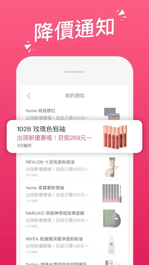 商品有折扣 iCheck 會立刻通知你,讓你不錯過任何優惠 ♡