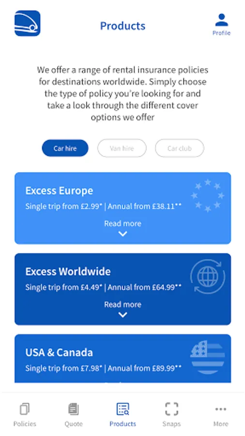 Use this ground-breaking app to save up to 60% on the costs of car hire excess insurance and Collision Damage Waiver (CDW) policies for use with rental vehicles worldwide. Instead of paying up to £15 (€18, $20) per day on additional insurance at the rental desk buy your independent policy in advance using the iCarhire app.
