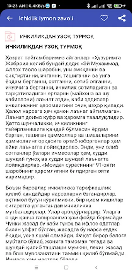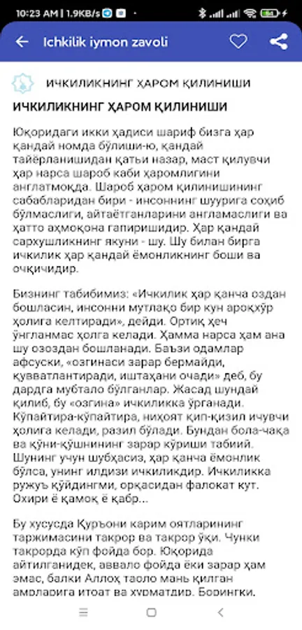 Risolada ichkilikning insoniyat tabiatiga yotligi, uning shar’iy harom qilinganligi dalillar asosida ko‘rsatib berildi.