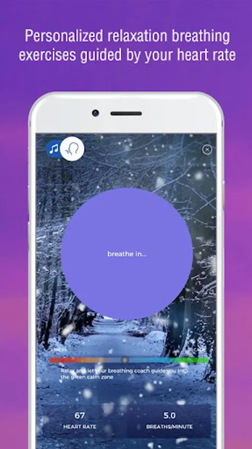 Everyone’s physiology is different and each person will have their own ideal relaxation breathing rate based on their current mindset. Your live heart rate readings (obtained by the heart rate sensor) will help personalize exercises and guide you to breathe at the rate that is ideal for you to achieve maximum calmness. Our app synchronizes with your physiology giving you a personalized result.