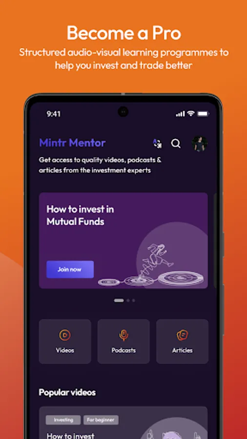 This is user friendly and sleek investment app. A one-stop shop for all your Mutual fund investment needs. With a user-friendly interface that offers a simple and intuitive way to invest in mutual funds. Invest like a pro. Invest like an Mintr.