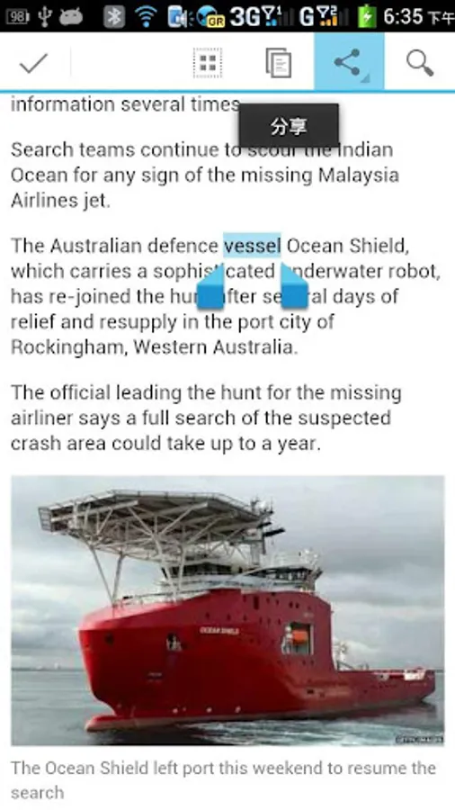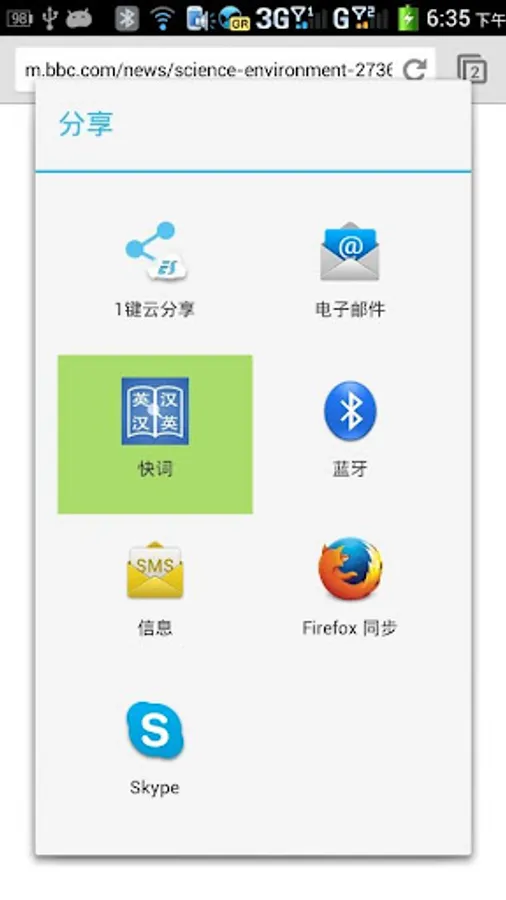 * 在其它应用中选择要查找的单词,然后“分享”给快词查找。