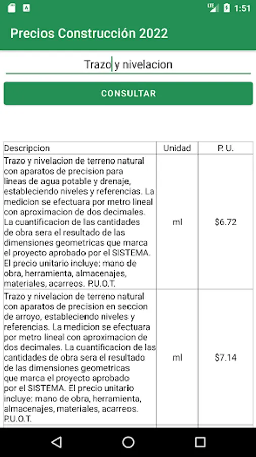 Find the unit price of the concept you need from our updated database. In this App you will find Unit Prices of: